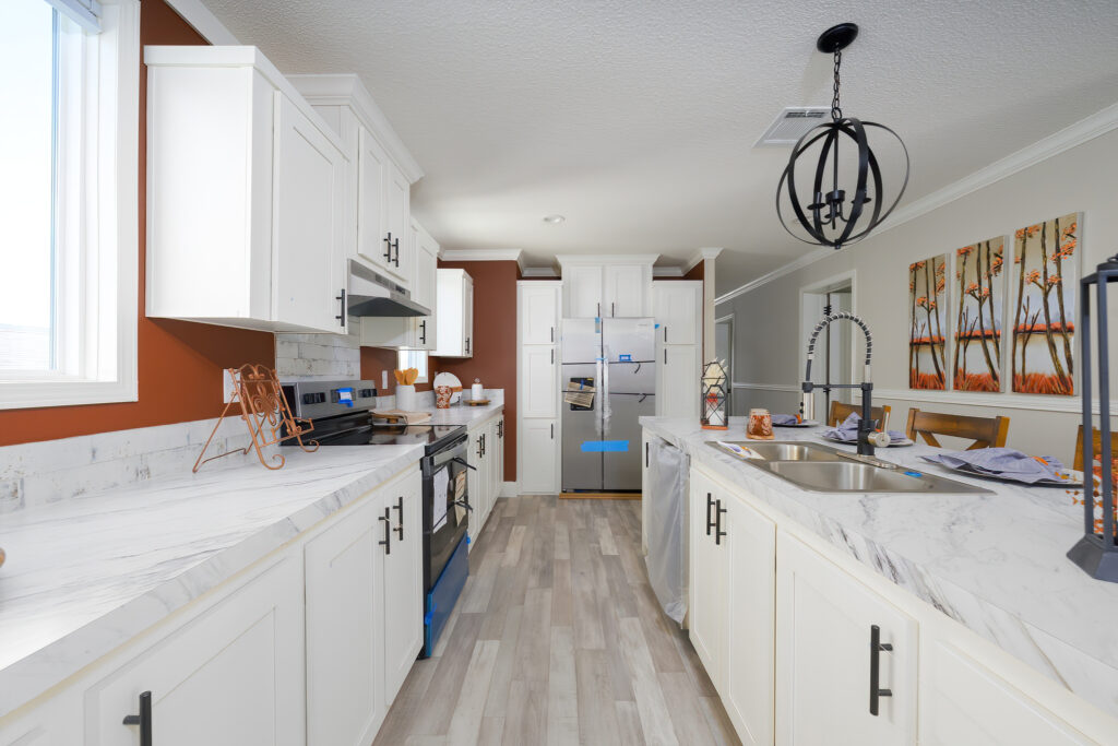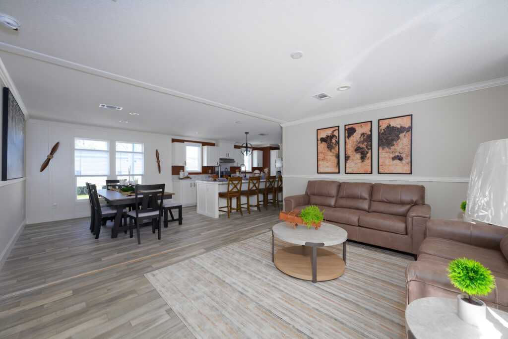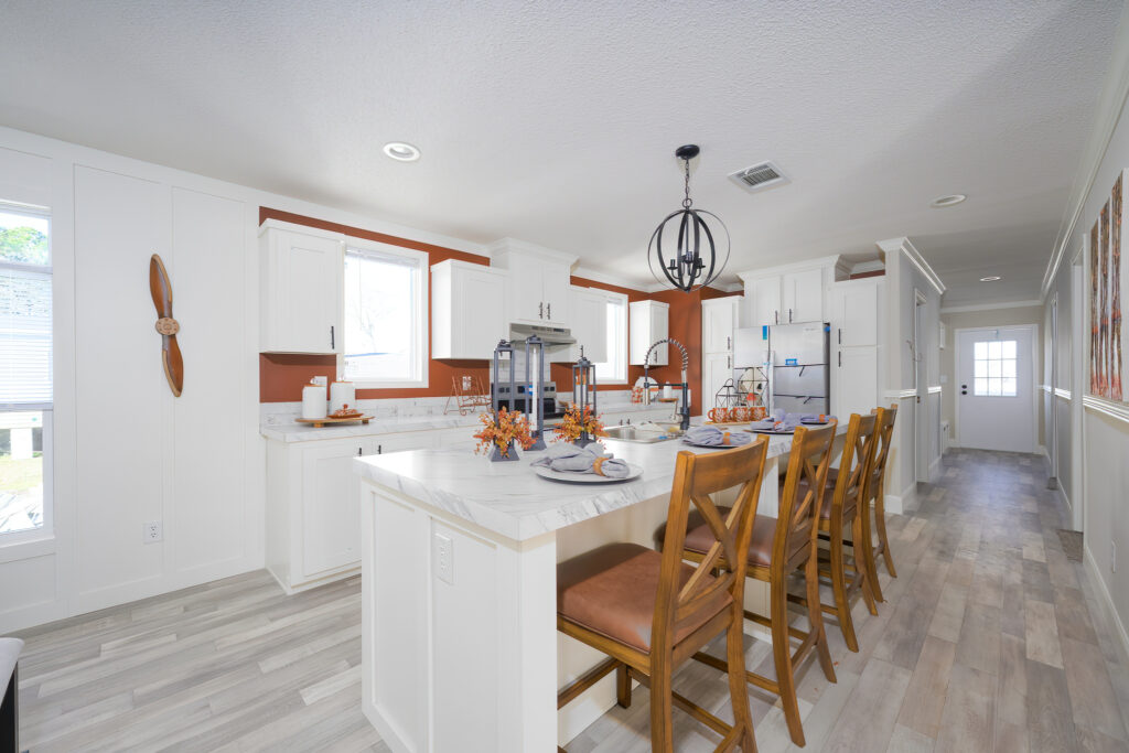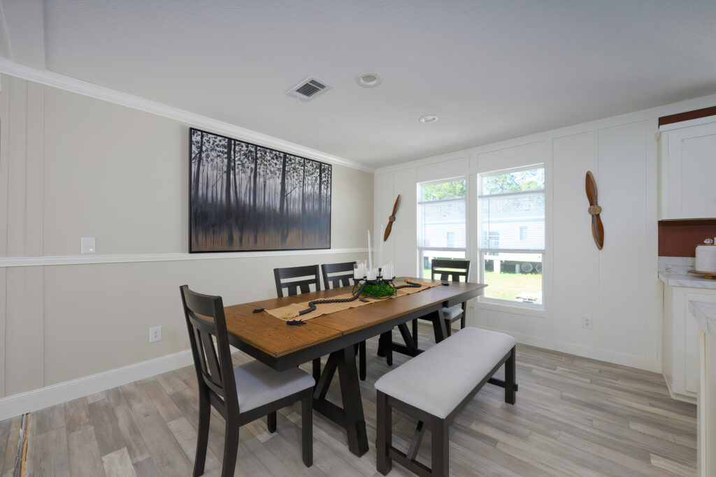 Welcome to the “Canyon”, a single-wide 3 bedroom, 2.5 bathroom mobile home consisting of 1560 square feet ready to be your new home! This beauty comes with the DD & HPS painted sheetrock package, board and batten feature wall in the dining room, and LED recessed lighting throughout. A few key features in this design’s living area includes a locker bench with hooks, round oil rubbed bronze interior door knob handles, a craftsman front door, and a cottage rear door.