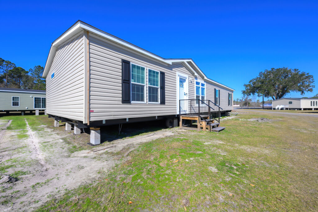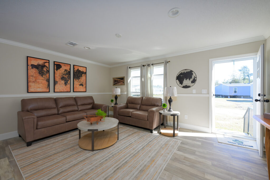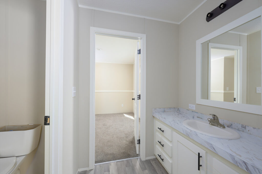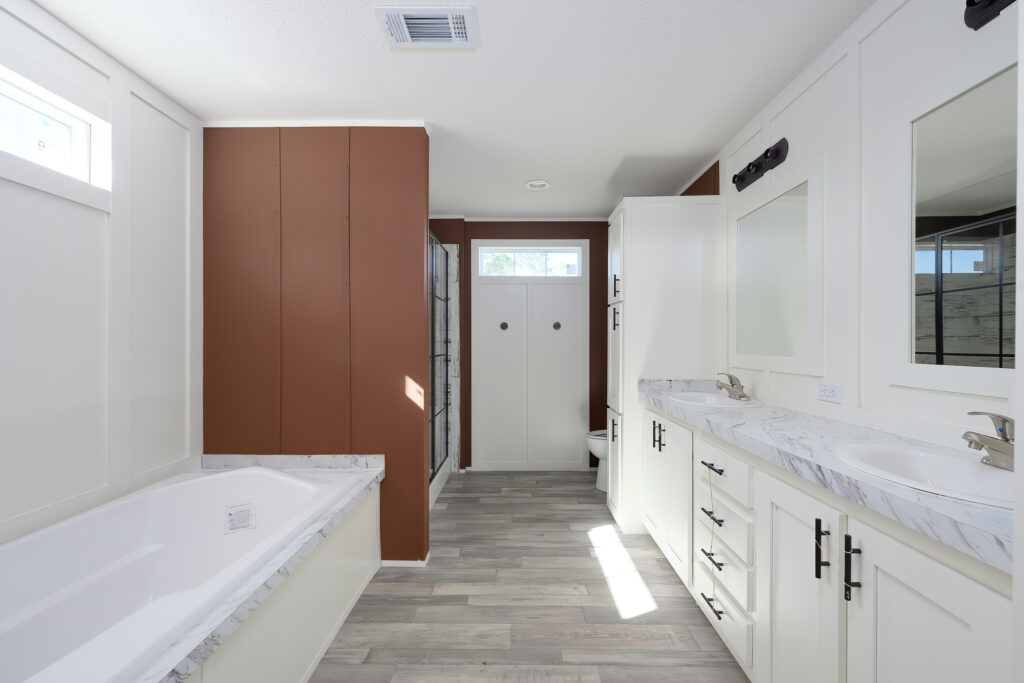The Master bathroom is the oasis of your home, the “Canyon” offers accent trimming in the master bathroom, beautifully lighting from precise window placement, and a 60″ shower with a glass panel door accented by black grid detailing. The “Canyon” mobile home offers a range of customizable options, allowing you to tailor your living space according to your preferences. Welcome home to a life of unparalleled comfort and timeless charm. Call Circle B Homes today to view this amazing home.