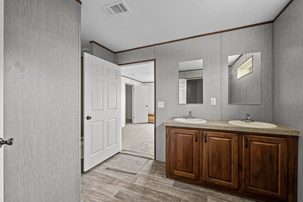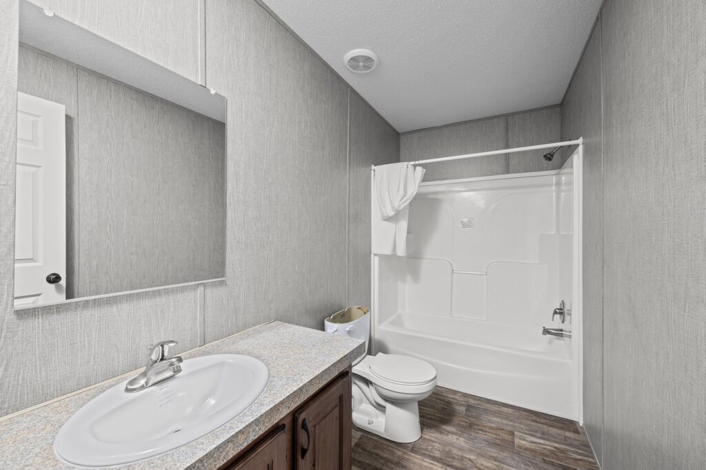 The Messi is uncompromising in its commitment to quality, particularly when it comes to bathroom fittings. It is outfitted with a one-piece 44″x60″ fiberglass shower complete with a white rod and curtain, porcelain lavatories with single lever metal faucets, and a double lavatory with a mirror. Additionally, the home includes two one-piece 60″ fiberglass tub/showers with surrounds, offering a luxurious, spa-like experience within the comfort of your own home.